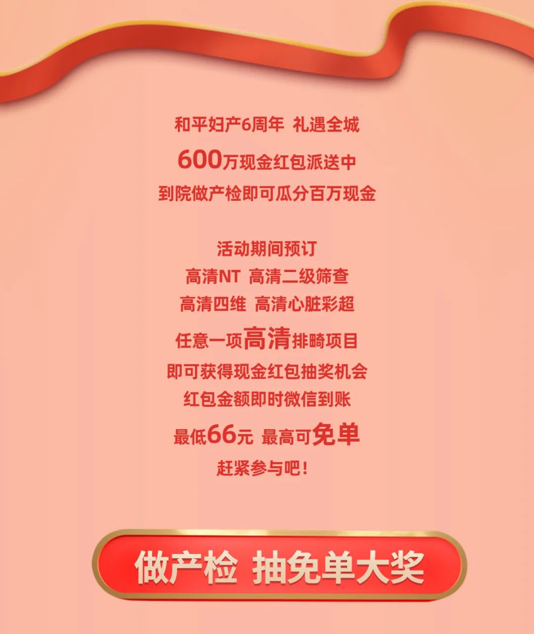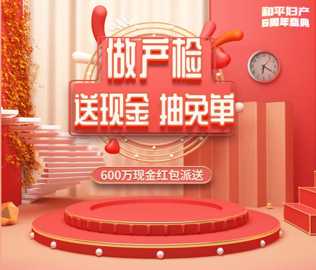 和平妇产6周年盛典!产检送现金,最高可免单!600万红包秒到账!